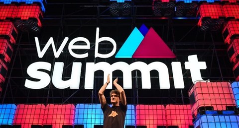 | Le co-fondateur du Web Summit Paddy Cosgrave lors de la cérémonie de clôture de l'évènement, le 9 novembre à Lisbonne |