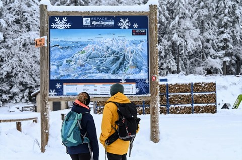 | Des personnes regardent la carte du domaine skiable de Villard-de-Lans, le 5 janvier en Isère. |