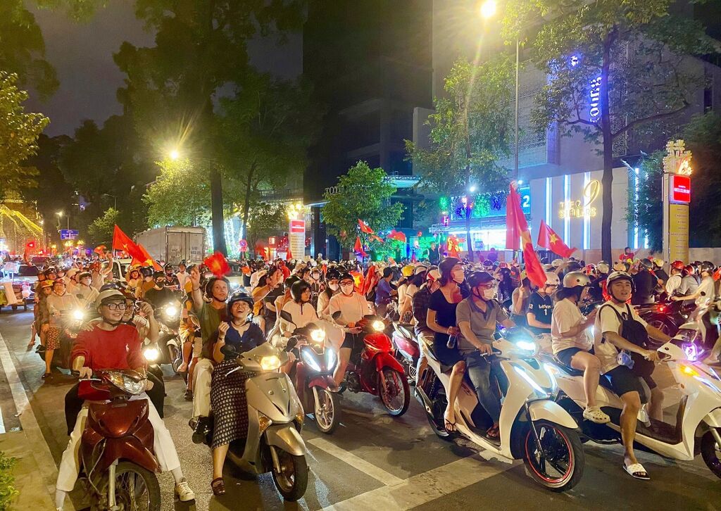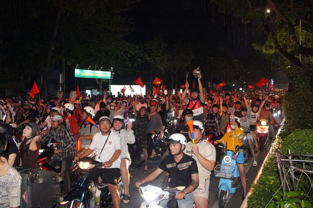 Dans la ville de Cân Tho, sitôt le coup de sifflet final donné, un grand nombre d'habitants des rues environnantes se sont dirigés vers les rues du 30 avril et du 3 février (arrondissement de Ninh Kiêu) pour rejoindre le centre-ville. Le long des deux côtés des rues, des personnes de tous âges frappaient des casseroles et des poêles, et soufflaient dans des trompettes bruyantes, accompagnant la foule qui célébrait dans les rues.