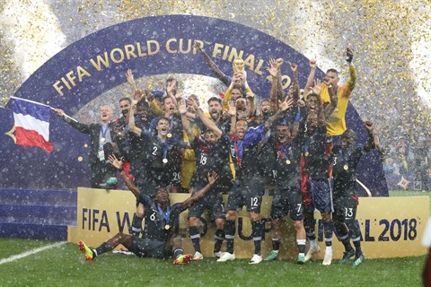| L'équipe de France sacrée championne du monde après sa victoire sur la Croatie en finale, le 15 juillet à Moscou. Photo: Xinhua/VNA/CVN |