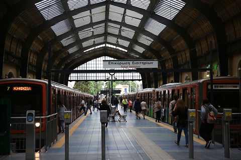 | Les moyens de transport en commun sont également perturbés le 17 mai à Athènes. |