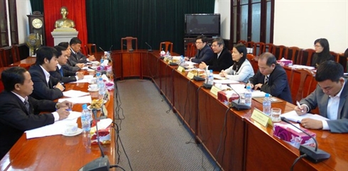 | Séance de travail le 12 mars à Hanoi entre la CGTV et la Fédération des syndicats du Laos. |