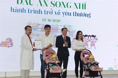 | Cérémonie de sortie de l'hôpital pédiatrique de la ville pour Truc Nhi et Diêu Nhi. |