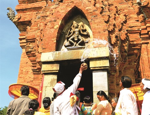 La plupart des tours Cham sont construites en hauteur sur les collines, au nombre de cinq ou six sur chaque site. Les tours principales sont consacrées au culte de Shiva - le dieu suprême dans la religion Cham. Leur porte est toujours orientée vers l’Est (le lever du soleil). Les Cham l’ouvrent seulement lors des cérémonies.
