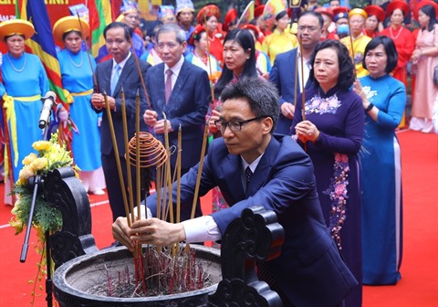 | Le vice-Premier ministre lors de la cérémonie d'offrande d'encens au Temple Voi Phuc, le 29 mai à Hanoï. |