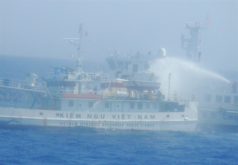 En particulier, la population de l'ensemble du pays est particulièrement indignée devant l'installation illégale par la Chine de sa plate-forme de forage Haiyan Shiyou - 981 dans le plateau continental et la zone économique exclusive (ZEE) du Vietnam, accompagnée de sa mobilisation d'un grand nombre de navires dont des unités et des avions militaires pour protéger cette violation du droit international, et de manière aggressive en menaçant et en endommageant des navires vietnamiens légitimement en activité dans cette zone maritime.