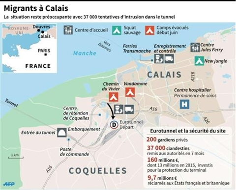 Le tunnel sous la Manche fait l'objet, depuis le renforcement de la sécurité au port voisin début juin, de tentatives massives d'intrusion de migrants prêts à tout pour gagner la Grande-Bretagne, qu'ils voient comme un "eldorado".