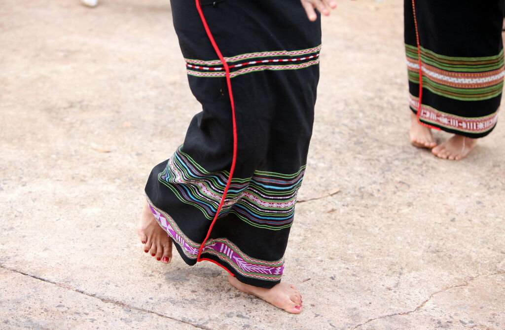 Pour confectionner les costumes traditionnels, les habitants locaux tissent et teignent eux-mêmes leurs tissus à l’aide de différentes écorces d’arbres et de fruits. Avec les gongs, ces tenues constituent un patrimoine culturel que tous les Ê dê dignes de ce nom s’efforcent de préserver.