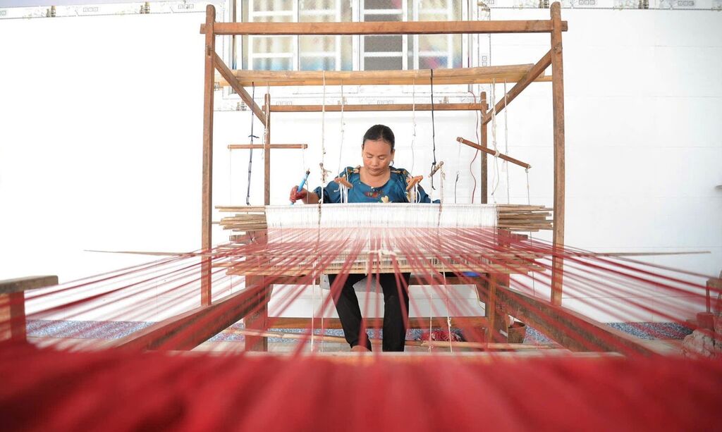 Neang Chanh Ty, du hameau de Sray Skoth, a appris à tisser avec sa mère à l’âge de 10 ans et est devenue experte dans l’artisanat à l’adolescence. Pour préserver et promouvoir l’artisanat traditionnel de sa famille, elle a élargi sa pratique en diversifiant les produits et en l’intégrant au développement touristique, attirant ainsi des visiteurs intéressés par cet art.