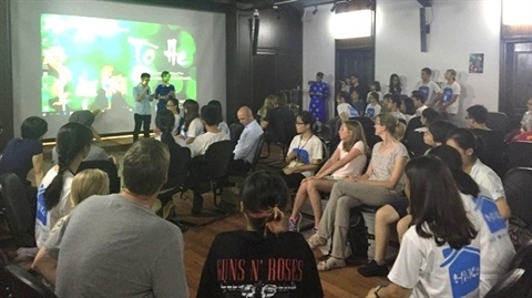 | L'atelier culturel sur le thème «tò he» attire non seulement des jeunes vietnamiens, mais aussi de nombreux amis étrangers. |