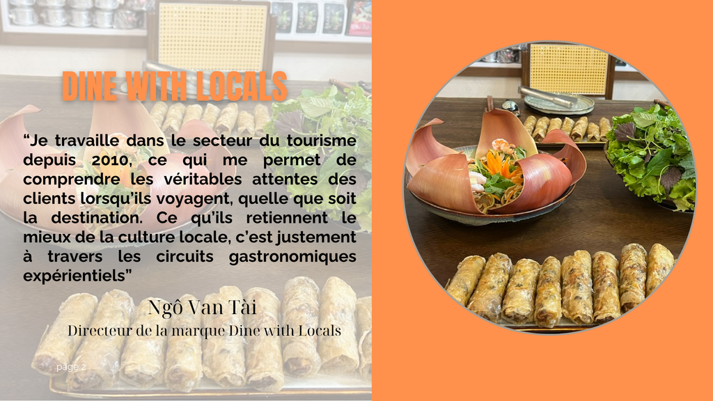 Dans le cadre de ce cours, les participants ont l’occasion de visiter un marché traditionnel vietnamien qui leur offre un regard sur les pratiques locales dans le choix des ingrédients les plus frais. Ensuite, c’est l’heure de mettre les mains à la pâte sous la direction d’une cuisinière. "Je travaille dans le secteur du tourisme depuis 2010, ce qui me permet de comprendre les véritables attentes des clients lorsqu’ils voyagent, quelle que soit la destination. Ce qu’ils retiennent le mieux de la culture locale, c’est justement à travers les circuits gastronomiques expérientiels", a partagé Ngô Van Tài, directeur de la marque Dine with Locals. "Grâce à ces tours culinaires, ils peuvent interagir avec les cuisiniers, mieux comprendre la culture locale, goûter les spécialités des différentes régions traversées, et ainsi approfondir leur connaissance culturelle. Cela donne à leurs voyages un véritable sens, rendant leurs expériences plus riches et mémorables", a-t-il poursuivi.