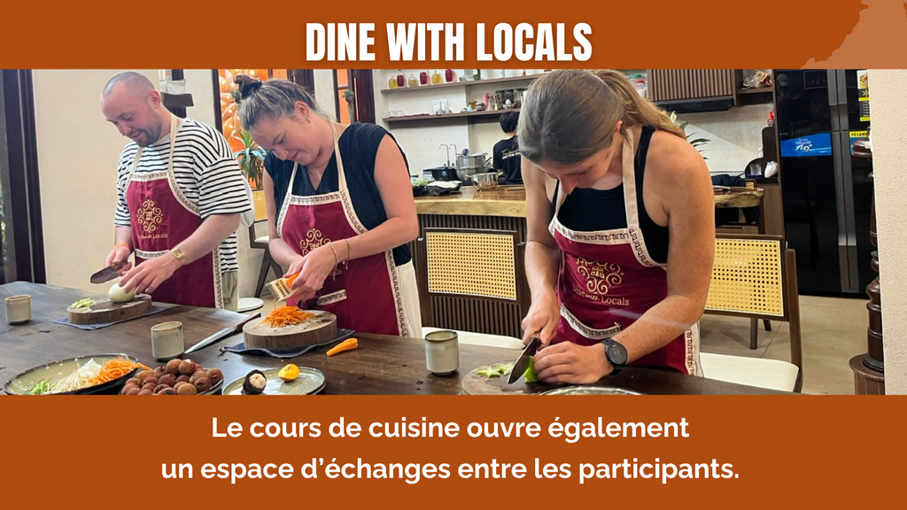 Le siège de Dine with Locals, marque spécialisée dans l’organisation de cours de cuisine vietnamienne se trouve dans une petite rue du quartier de Ba Dinh, Hanoï. Cette adresse attire toujours de nombreux visiteurs étrangers désireux de préparer eux-mêmes des plats typiquement vietnamiens.