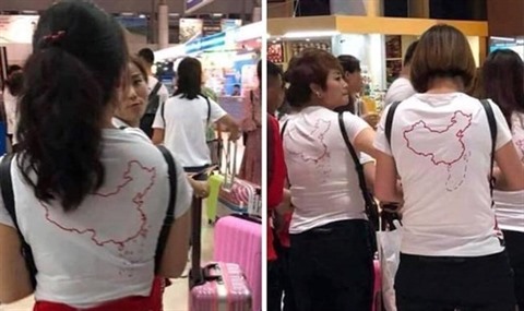 | Les images comme les cartes avec la prétendue "ligne de langue de bœuf" sur les T-shirt que portent des touristes chinois portent atteinte à la souveraineté vietnamienne. |