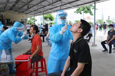 | Prélever l'échantillon pour le test de dépistage du COVID-19 à Hai Phong (Nord). |