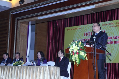 | Le vice-Premier ministre Nguyên Xuân Phuc à la conférence-bilan sur la mise en œuvre des politiques d’envoi de travailleurs à l’étranger, de formation professionnelle et de réduction de la pauvreté dans les districts démunis, tenue le 19 janvier à Lào Cai (Nord). |