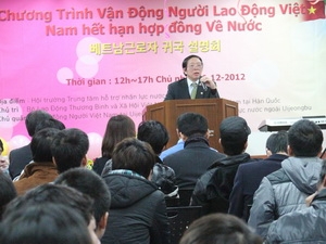 | Les travailleurs vietnamiens encouragés à rentrer chez eux comme prévu à la fin de leur contrat de travail lors d'une réunion le 17 décembre en République de Corée. |