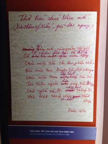 | Un poème du Président Hô Chi Minh écrit à l’occasion du Têt traditionnel en 1962. |