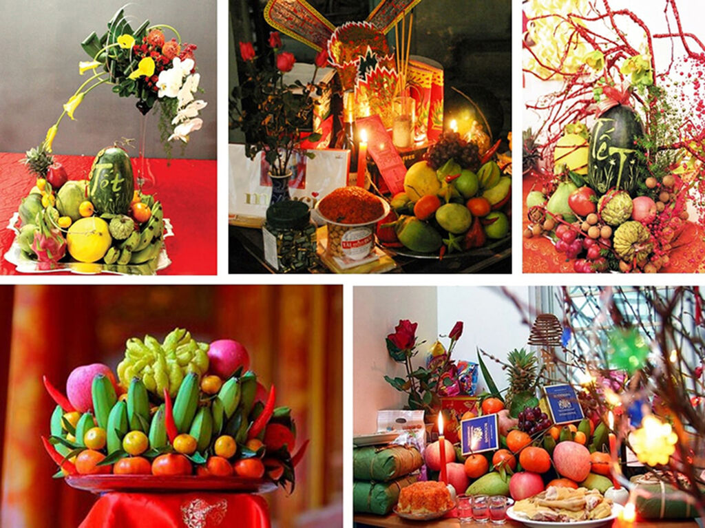 Les fruits sont de plus en plus diversifiés selon les régions, c’est pourquoi le plateau aux cinq fruits à l’occasion du Têt traditionnel est de plus en plus riche. Ce plateau symbolise les cinq éléments de base de la philosophie orientale : bois, feu, terre, métal et eau.