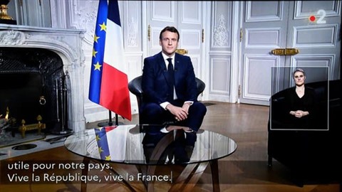 | Emmanuel Macron à l'Élysée, à l'occasion de son allocution télévisée du 31 décembre 2020 |