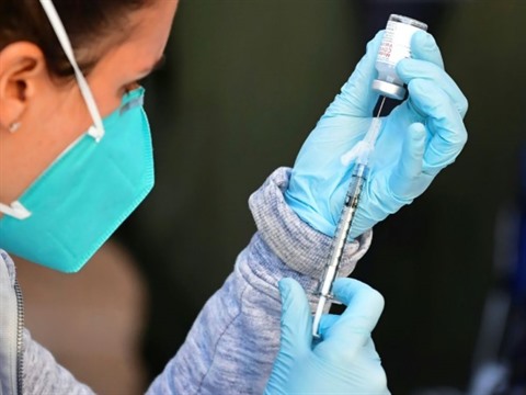 | Préparation d'une dose de vaccin contre le COVID-19 à Los Angeles, en février en Californie. |