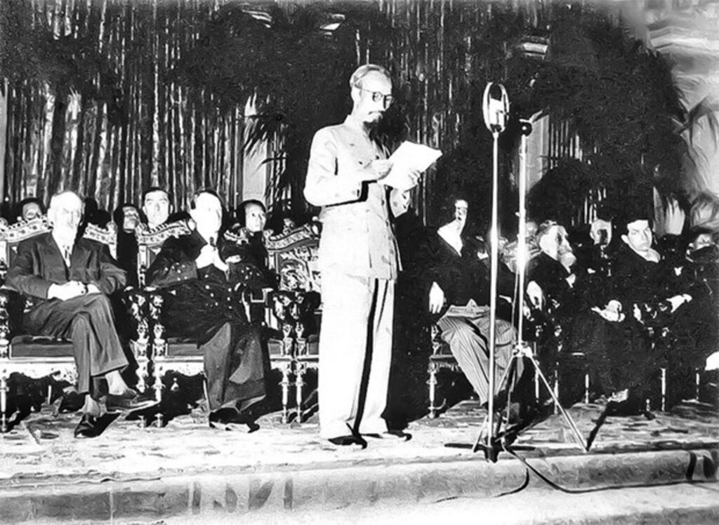 "Le Vietnam a le droit d'être libre et indépendant et, de facto, est devenu un pays libre et indépendant. Le peuple vietnamien, dans son ensemble, est décidé à mobiliser toutes ses forces spirituelles et matérielles, à sacrifier sa vie et ses biens pour garder son droit à ce droit de liberté et d'indépendance".