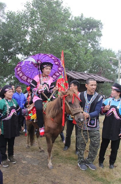 Aujourd’hui, Lô Si Chin de l’ethnie Bô Y, commune de Thanh Binh, district de Muong Khuong, province de Lào Cai (Nord), participe à une activité pour reconstituer le mariage traditionnel de son ethnie au Village culturel et touristique des ethnies du Vietnam.