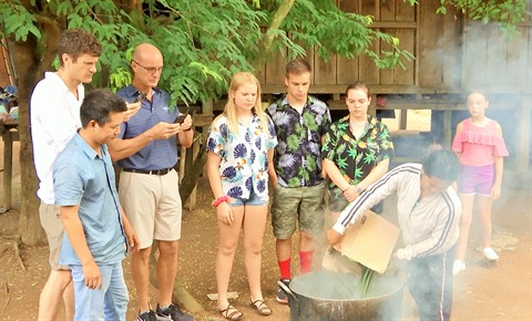 Le soir, ils peuvent gouter des plats locaux typiques tels que le riz gluant, accompagné de poulet, de porc grillé, de légumes sauvages, de pousses de bambou bouillies... Les visiteurs pourront choisir de dormir dans une maison sur pilotis ou dans une tente au sommet de la colline de Sa Mot pour admirer l’aube dans la brume.