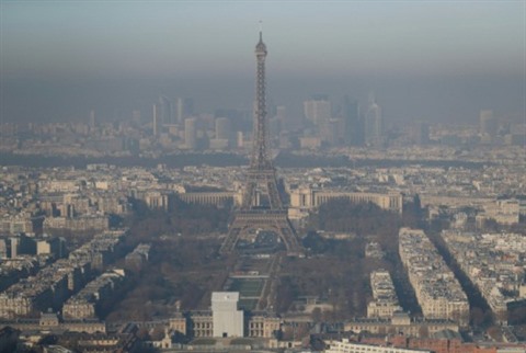 | La tour Eiffel à Paris, le 5 décembre, jour de pollution |