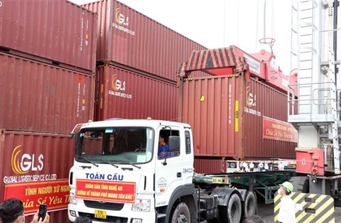 | Des camions transportent des produits de première nécessité à Hô Chi Minh-Ville. |