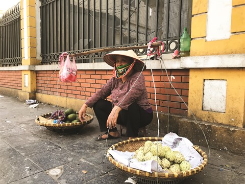 Bien que Hanoï n’ait pas mis en place de nouveau confinement, les autorités locales ont recommandé de limiter les rassemblements publics. Autour du lac Hoàn Kiêm, où la zone piétonne a été interdite vers la mi-août, il est devenu rare de trouver des vendeurs de rue sur les trottoirs. Nguyên Thu Xuyên, 50 ans, est vendeuse de goyaves depuis douze ans. Elle commence ses journées avec une palanche à l’épaule. Sa famille vit des goyaves qu’elle cultive dans son jardin de 900 m2 avec plus de 100 goyaviers, dans le quartier de Dông Du (district de Gia Lâm).