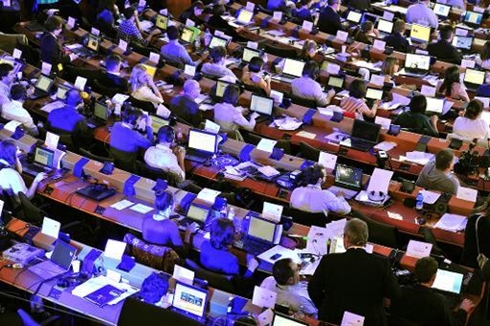 | Une conférence de presse à Bruxelles, le 25 mai. Photo : AFP/VNA/CVN |