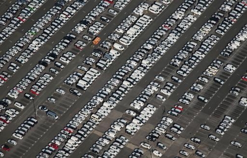 | Des voitures neuves sur un parking à Essen, dans l'Ouest de l'Allemagne. |