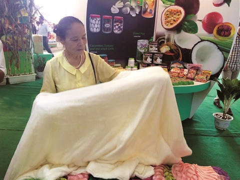 Prenant un drap en main, Mme Thuân explique : «D’apparence, il ressemble à un drap ordinaire en coton mais à l’usage vous allez vous apercevoir qu’il est de bien meilleure qualité et plus chaud en apportant un confort douillet». D’après elle, cette pièce est produite en forçant les vers à tisser collectivement un dense réseau de fils sur une surface encadrée, à une époque de leur développement où les vers sont programmés pour tisser leur cocon individuel.