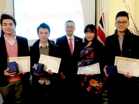 | Remise des satisfecits aux étudiants brillants à l'ambassade du Vietnam en Grande-Bretagne. Photo : VNA/CVN |