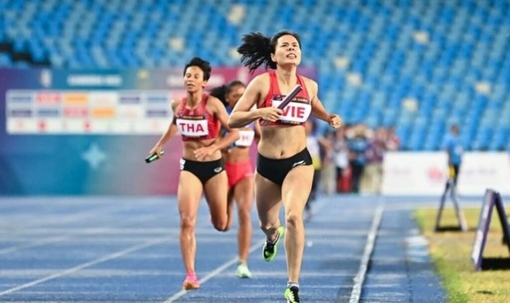 | Nguyên Thi Huyên et ses coéquipières décrochent la médaille d'or dans l’épreuve de 4x40 m pour féminin. |