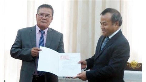 | Dinh Ngoc Riêm (à gauche), consul d’honneur du Vietnam en Nouvelle-Calédonie. |