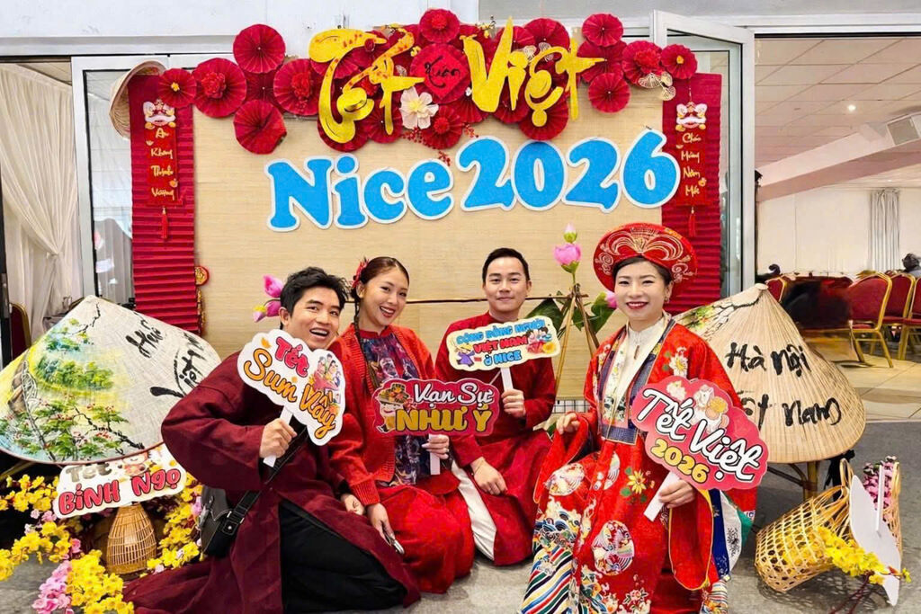 Parallèlement, à Nice, en France, la toute première célébration du Têt organisée par la communauté vietnamienne locale s’est déroulée dans une atmosphère chaleureuse et empreinte d’émotion. L’événement "Têt Viêt Nice 2026" a permis à des centaines de Vietnamiens de l’étranger et de Français de découvrir les décorations traditionnelles, les jeux folkloriques, la confection de bánh chưng et les spécialités du Têt.