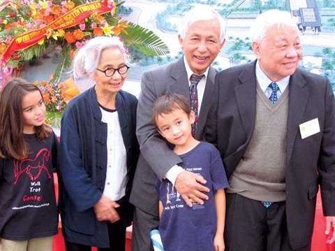 | Le Professeur Trân Thanh Vân (2e à droite), un Viêt kiêu de France, qui a fait la navette ces dernières années entre la France et le Vietnam. |