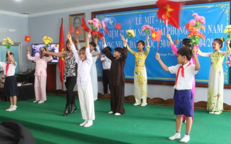 | Un numéro artistique lors d'une cérémonie organisée par les Cambodgiens d'origine vietnamienne à Phnom Penh pour fêter les 42 ans de la libération du Sud et de la réunification nationale (30 avril). |