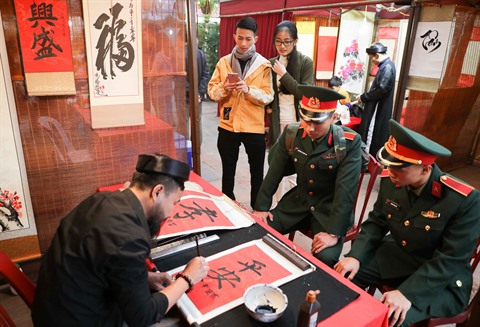 | Demander de jolis idéogrammes chez les calligraphes est une belle coutume des Vietnamiens à l’occasion du Nouvel An lunaire. |