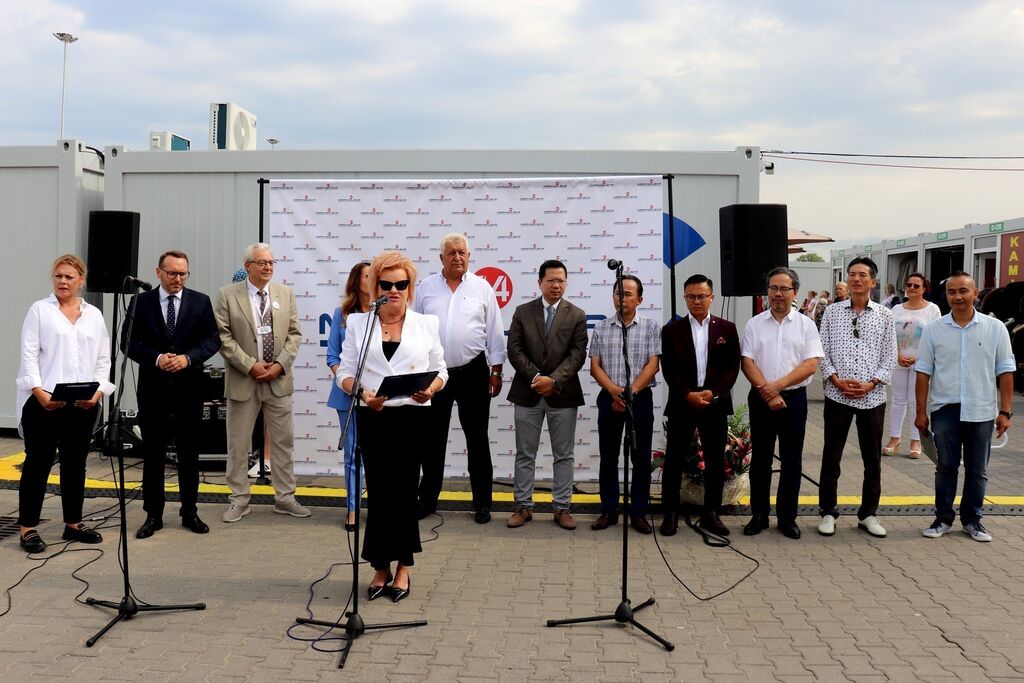 | Cérémonie d'ouverture d'un centre commercial temporaire en Pologne, le 31 août en Pologne. |