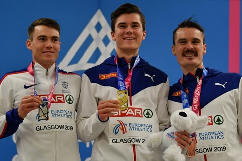Le Britannique Chris O'Hare a pu devancer sur la ligne Henrik, le frère aîné de Jakob, mais plus d'une seconde derrière le vainqueur. Jimmy Gressier (7e) et Yoann Kowal (9e) ont terminé plus loin. Les Bleus n'ont remporté, sans grande surprise, aucune médaille samedi 2 mars mais ont placé leurs pions pour dimanche: Basile Rolnin est 4e après 4 épreuves de l'heptathlon et la demi-fondeuse Rénelle Lamote s'est facilement qualifiée pour la finale du 800 m. Les hurdlers Pascal Martinot-Lagarde, Aurel Manga et Wilhem Belocian feront également partie des favoris du 60 m haies. Autre Norvégien en verve samedi 2 mars, le spécialiste habituel du 400 m haies Karsten Warholm (champion du monde 2017), a égalé le record d'Europe de l'Allemand Thomas Schönlebe (datant de 1988) en remportant le 400 m en 45 sec 05. La Norvège n'avait jamais gagné de titre européen en salle: elle en a remporté deux en quelques minutes samedi 2 mars. Mais tous les Vikings n'ont pas été à la fête: le spécialiste des épreuves combinées Martin Roe, à la lutte pour le titre sur l'heptathlon, est rentré la tête la première dans un poteau du saut en hauteur, scène rare, saignant ensuite sur le tapis et stoppant son concours à 1,92 m.