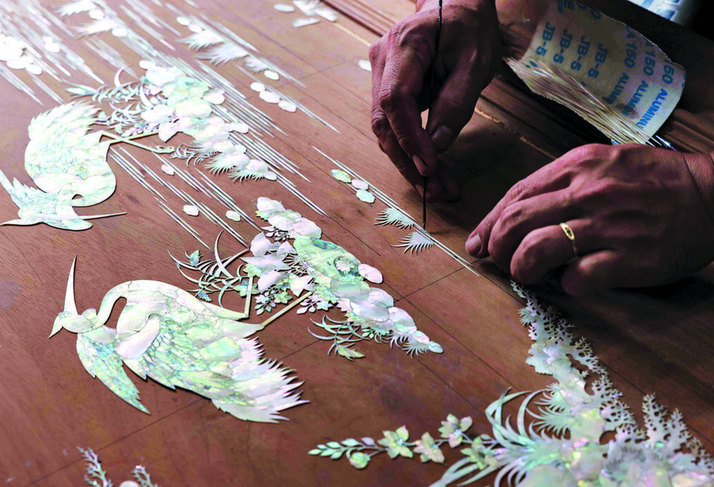 | L’incrustation de la nacre demande une patience sans bornes. |