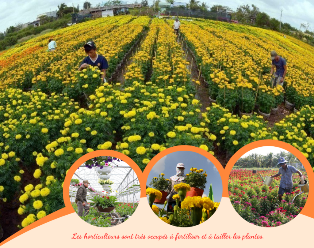 Selon Huynh Thê Trong, propriétaire du jardin d’orchidées Hai Phung et président de l’Association des agriculteurs du quartier d’An Phú Ðông, dans le 12e arrondissement, pendant le Têt, ces plantes ne constituent pas sa principale activité. Les plus demandés sont des abricotiers anciens, bien enracinés et ayant une grande valeur. À l’heure actuelle, les jardiniers travaillent sur la fertilisation des plantes afin qu’elles fleurissent juste pour le Têt.