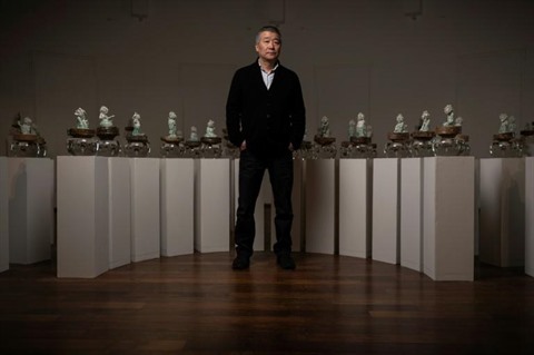 Cette installation fait écho aux prestigieuses collections de porcelaines chinoises qui se trouvent dans le musée parisien. "C'est une métaphore de la joie, de la poésie, de l'amour, aussi de l'illusion" qui peuplent la tête de chacun, explique-t-il, pour définir ces personnages, hommes et femmes, assis dans des poses très naturelles, avec des physiques très divers, et qui sont encore tous des "luohan", des disciples de Bouddha, en recherche.