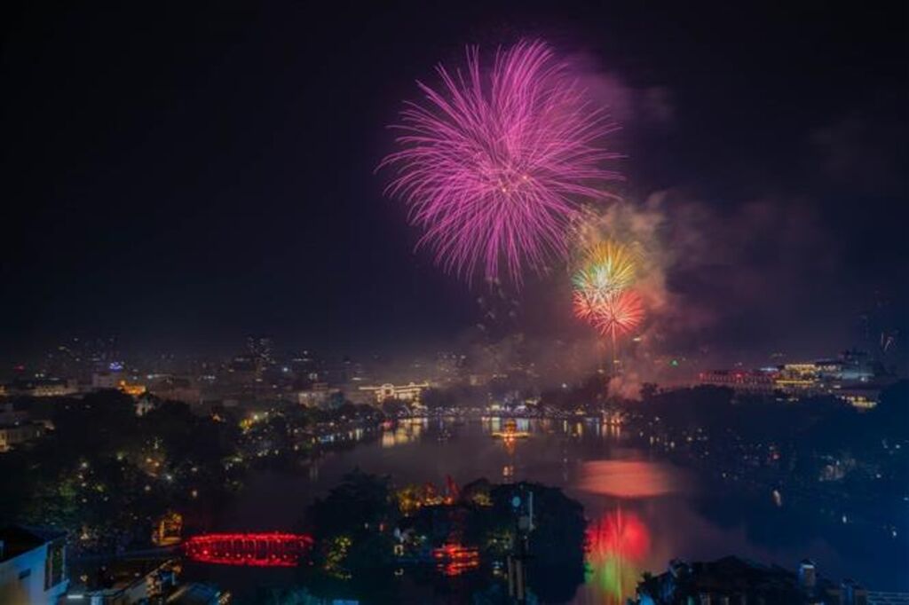 Les abords du lac Hoàn Kiêm (Épée restituée) et les rues piétonnes du Vieux quartier, connu sous le nom de Hanoï aux "36 rues et corporations" avec des vestiges empreints de cachets de l'ancienne capitale, étaient parmi les plus animés, avec des estrades pour le compte à rebours, des illuminations décoratives et une ambiance festive.