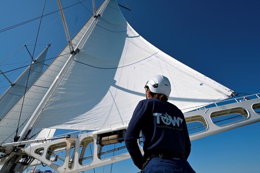 "Les navires marchent bien, ça va vite et ça décarbone vraiment", vante Guillaume Le Grand, président et cofondateur de Towt (TransOceanic Wind Transport), qui a commencé le transport de marchandises à la voile sur des vieux gréements au début des années 2010.