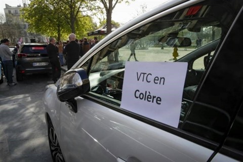 | Manifestation de chauffeurs de VTC le 28 mars à Paris. |