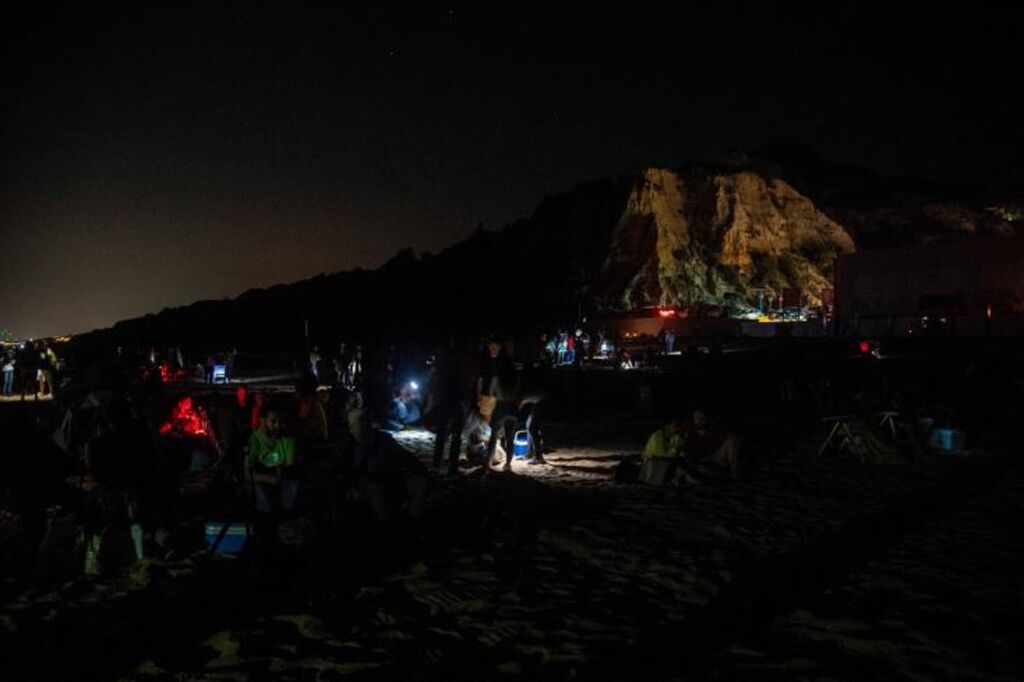 | Des personnes attendent le décollage de la fusée prototype Miura-1, finalement reporté, le 17 juin à Mazagon, en Espagne. |