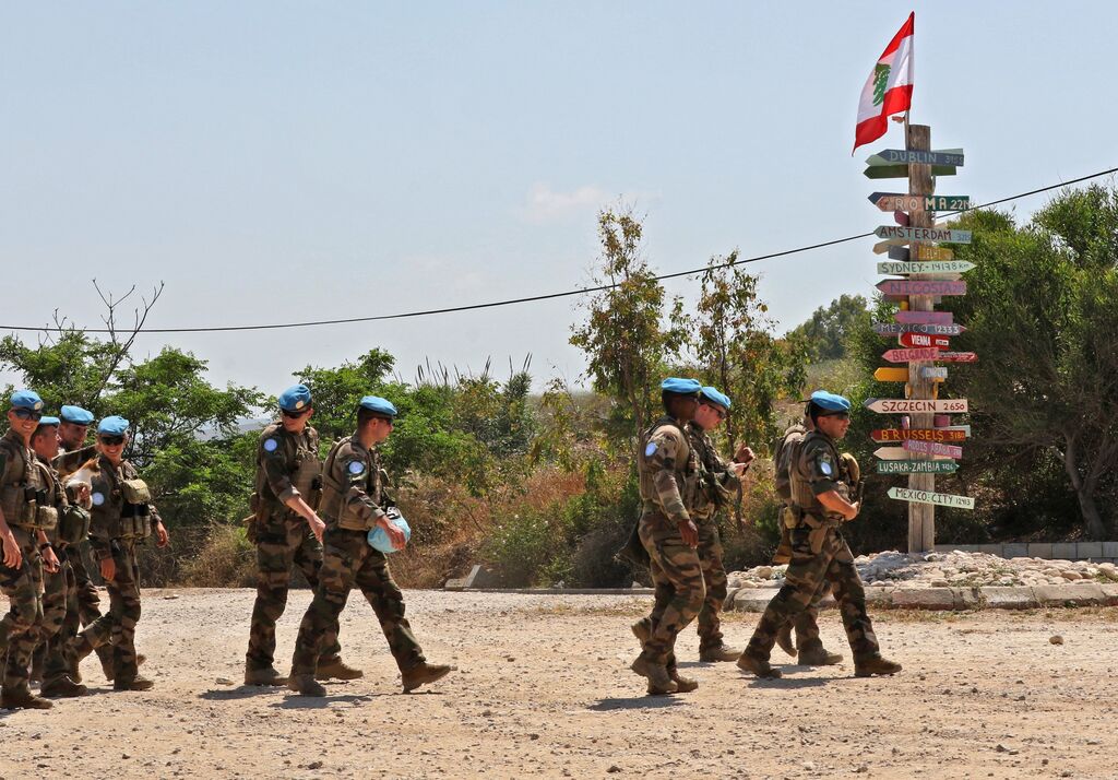 | Des soldats de la FINUL patrouillent à Naqura, au Sud du Liban. |